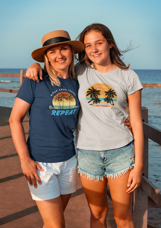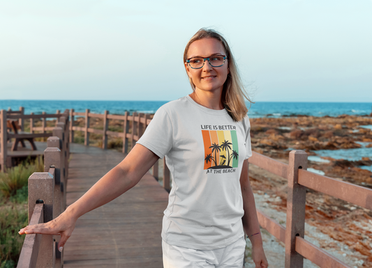 Size Large Gildan Cotton Travel Inspire "Life Is Better at the Beach, Vintage Design Womenswear Casual Top