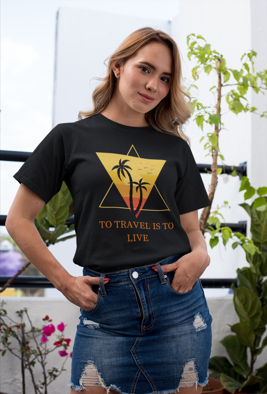 Black Cotton T Shirt, size XL, To Travel is to Live, Women's Wear Everyday Summer Crewneck